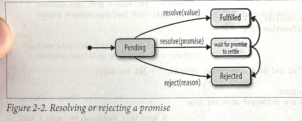 “Since the reject function transitions a promise to the rejected state, why does the resolve function transition a promise to a state called fulfilled instead of resolved? Resolving a promise is not the same as fulfilling it. When the argument passed to resolve is a value, the promise is immediately fulfilled. However, when another promise is passed to resolve, such as promise. resolve (otherPromise), the promises are bound together. If the promise passed to resolve is fulfilled, then both promises will be fulfilled. And if the promise passed to resolve is rejected, then both promises will be rejected. In short, the argument passed to resolve dictates the fate of the promise. Figure 2-2 shows this process.”